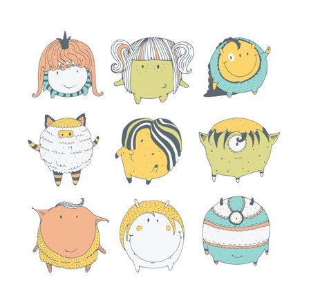 かわいいカラフルなモンスターのセットは 手書き落書きスタイルで 白い背景で隔離されました 美しい文字のコレクションです 子供イラストや幼稚なデザインの良いベクトル イラスト のイラスト素材 ベクタ Image